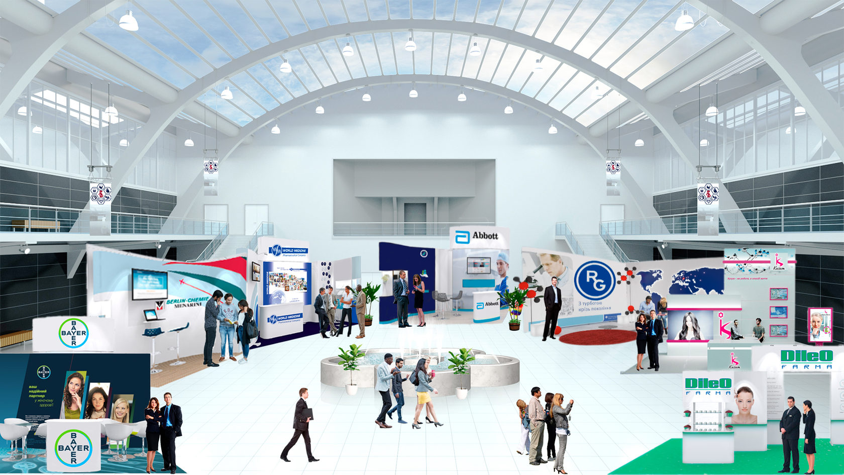 Кожен стенд та логотип компанії - інтерактивний. Натиснувши на них - Ви зможете переглянути інформацію та промо-матераіли компаній.